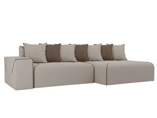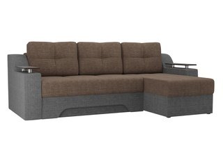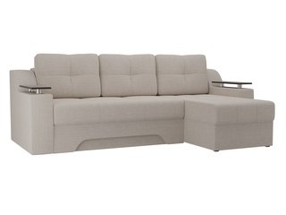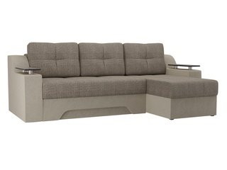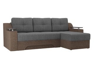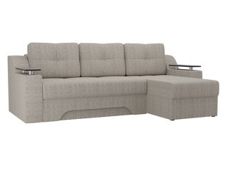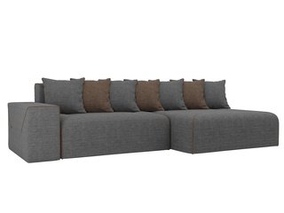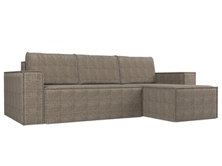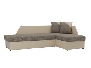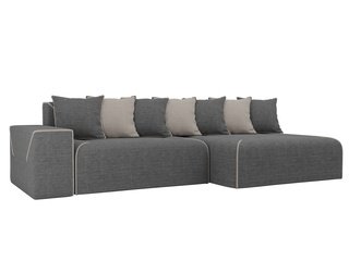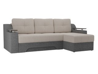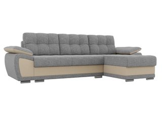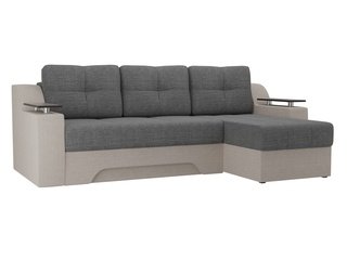 Угловой диван-кровать правый Майами Long, серый/бежевый/серый/рогожка