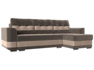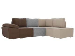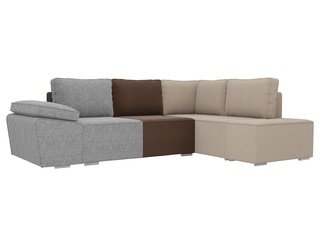 Угловой диван-кровать правый Майами Long, серый/бежевый/серый/рогожка