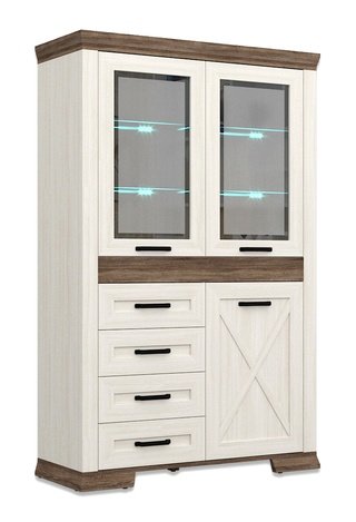 Шкаф-витрина с ящиками Марсель REG2W1D4S с подсветкой