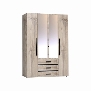 Шкаф 4-дверный с зеркалами Мале, дуб галифакс белый