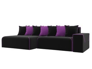 Угловой диван-кровать левый Кёльн, черный/фиолетовый/микровельвет