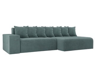 Угловой диван-кровать правый Кёльн, бирюзовый/велюр