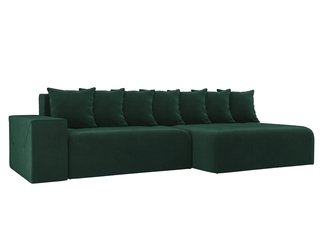 Угловой диван-кровать правый Кёльн, зеленый/велюр
