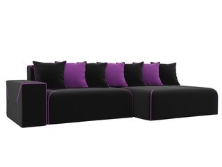 Угловой диван-кровать правый Кёльн, черный/фиолетовый/микровельвет