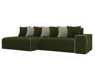 Угловой диван-кровать левый Кёльн, зеленый/бежевый/микровельвет