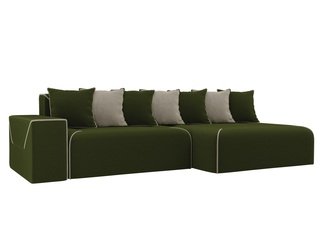 Угловой диван-кровать правый Кёльн, бежевый/зеленый/микровельвет