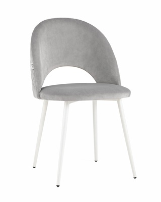 Стул Меган, велюровый светло-серого цвета/белые ножки
