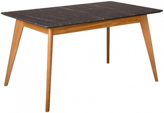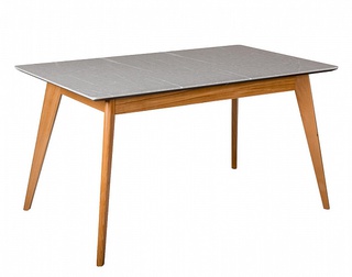 Стол обеденный раскладной Лунд 140 см, мрамор графит/натуральный бук
