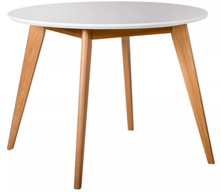 Стол обеденный круглый Лунд 96 см, белый/натуральный бук