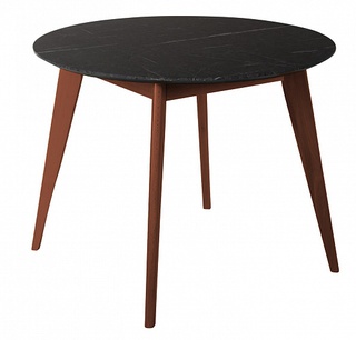 Стол обеденный круглый Лунд 96 см, мрамор графит/темный орех