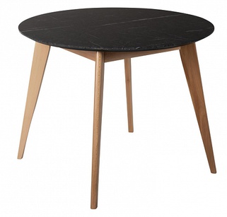 Стол обеденный круглый Лунд 86 см, мрамор графит/натуральный бук