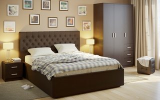 Комплект спальни Лофтум с мягкой кроватью, коричневая рогожка