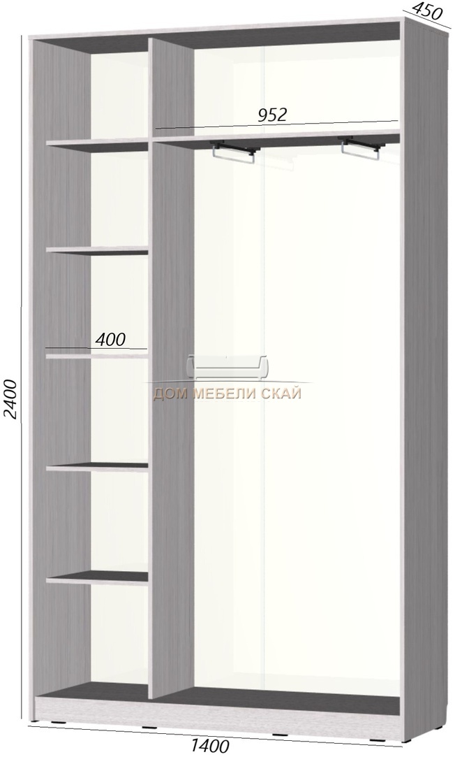 Достоинства Огромный шкаф-купе во всю стену вышел раза в два дешевле, чем нам считали в других магазинах. Рекомендую