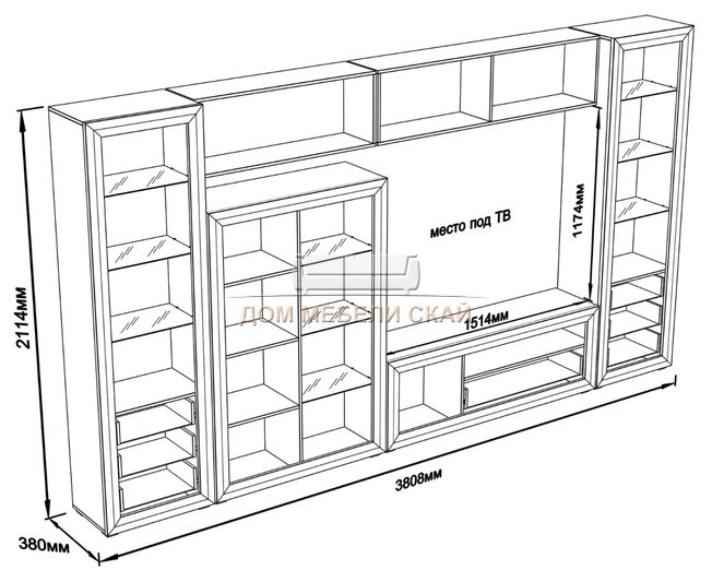 Высота:211.5 см Ширина:381 см Глубина:38 см