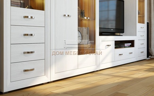 Зинаида, добрый день, данная гостиная является модульной, Вы можете расставить шкафы и тумбы по своему предпочтению. В составе комплекта указаны шкафы, входящие именно в эту конфигурацию, с полным списком модулей можно ознакомится ниже под характеристиками. Спасибо.