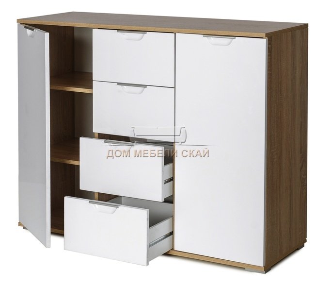 Комод Лайн-4, дуб/белый глянец