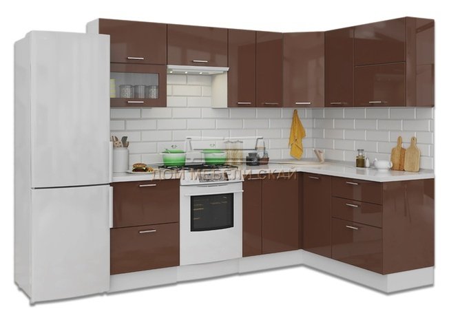 Кухня Модерн угловая 1600x2400, кофе глянец