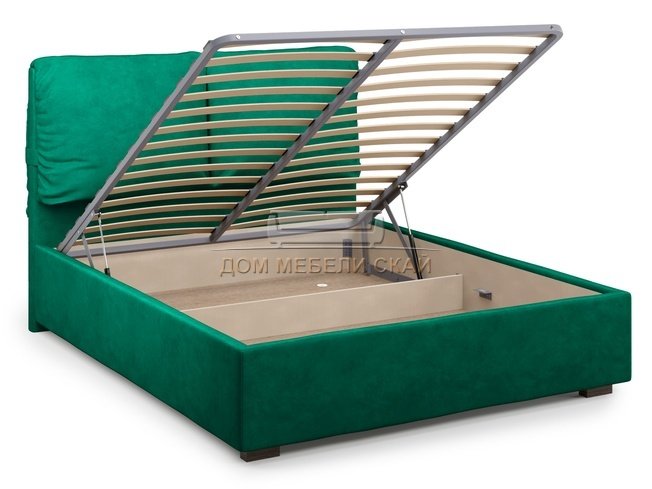 Кровать полутороспальная 140x200 Trazimeno с подъемным механизмом, зеленый велюр velutto 33