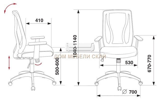 | Обивка | ткань, сетка | |||