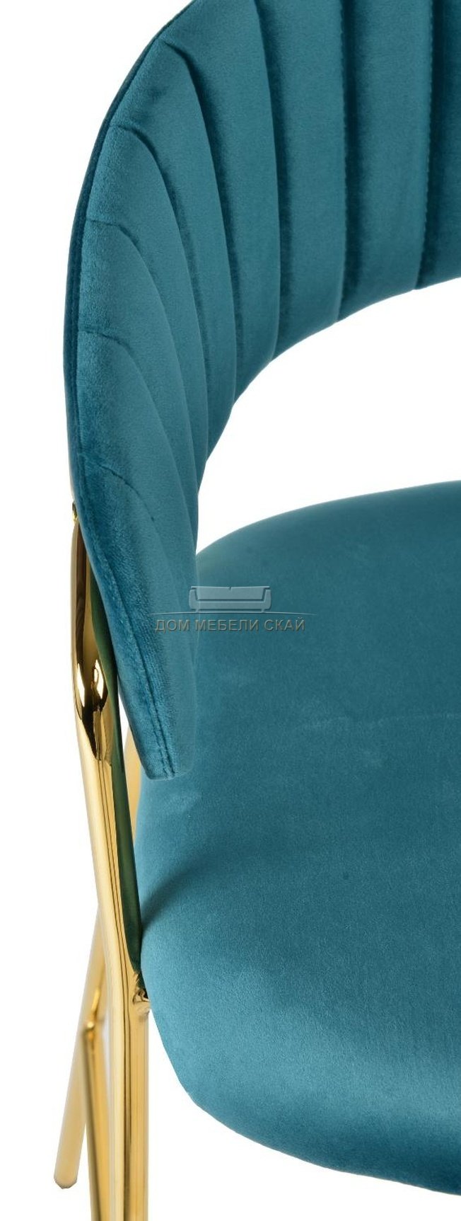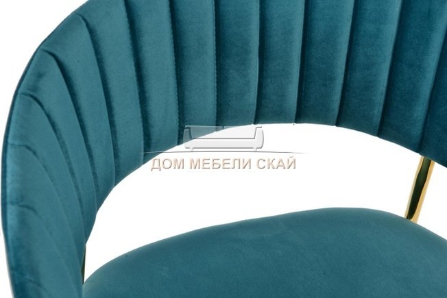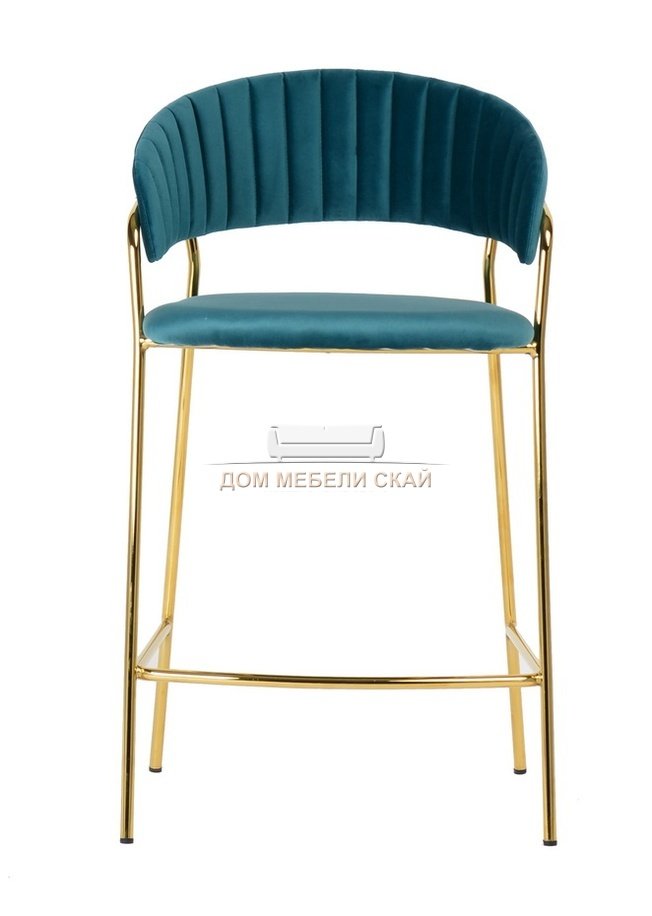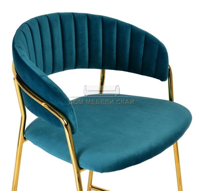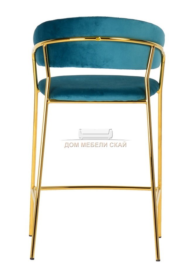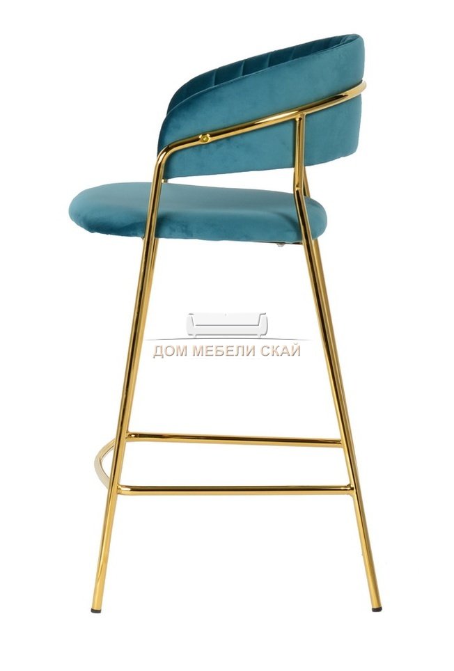 Барный стул Turin, велюровый синего цвета c золотыми ножками