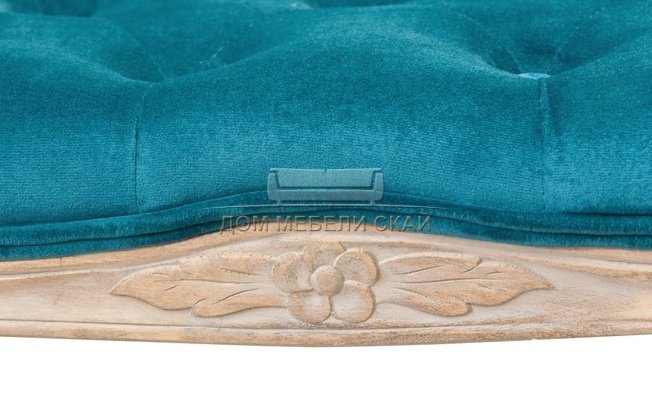 велюровая обивка благородного темно-голубого цвета, утяжка ромбовидной формы с применением мебельных пуговиц, обтянутых обивочной тканью