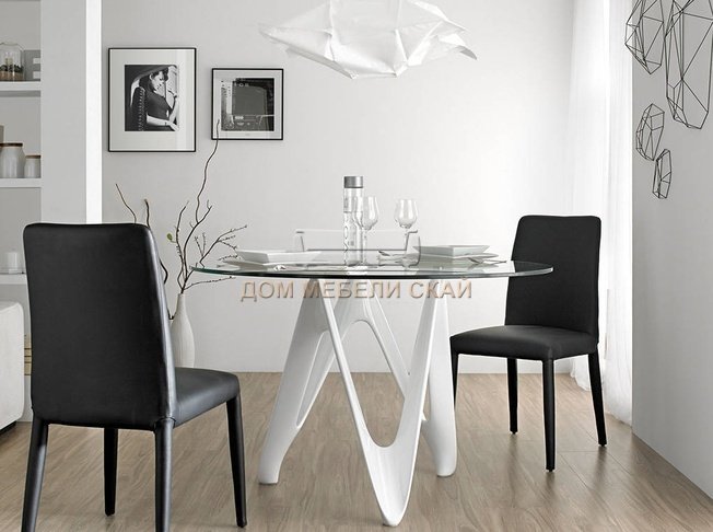 Стол обеденный круглый стеклянный с белыми ножками B063 D140