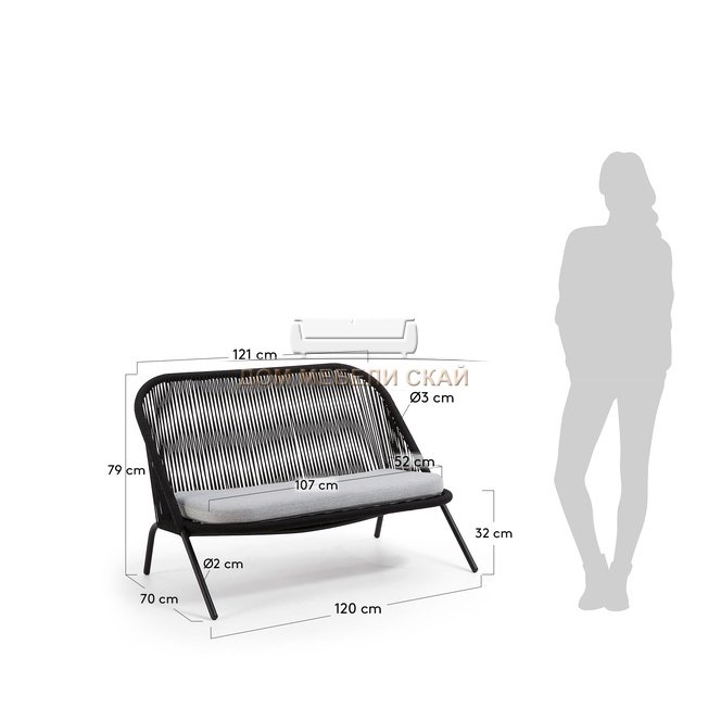 | Материал каркаса дивана | оцинкованная сталь, покрыта порошковой краской, спинка и боковины выполнены плетением полиэфирной веревкой | |||