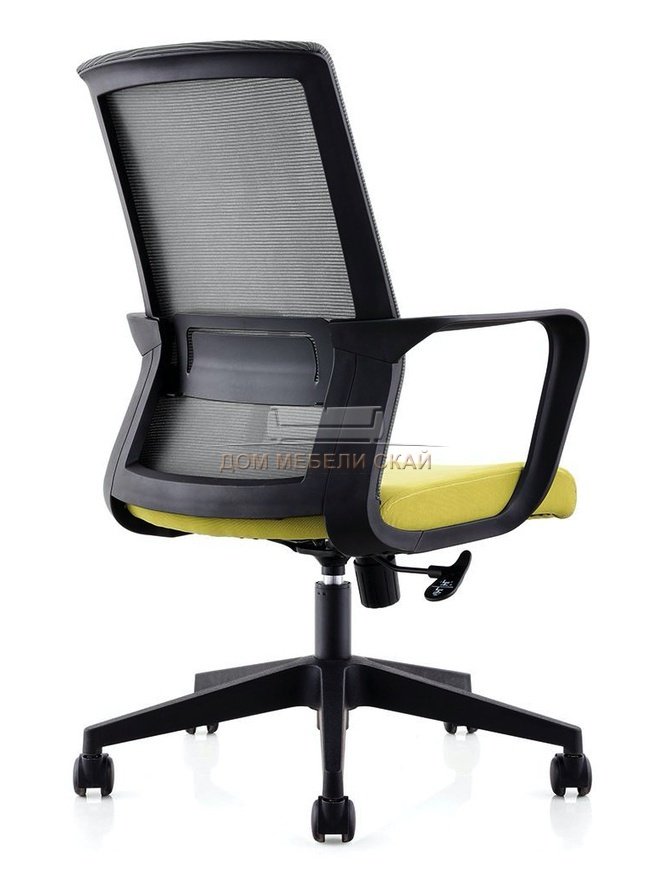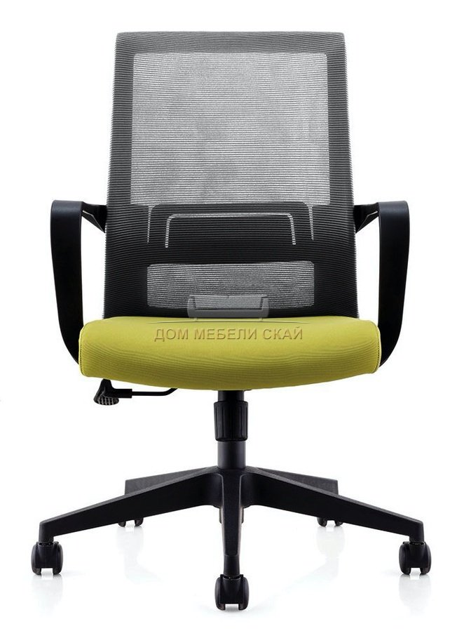 Кресло офисное Интер LB, черный пластик/серая сетка/зеленая ткань