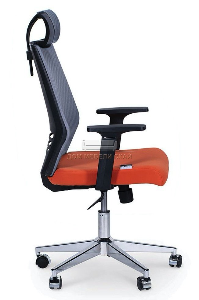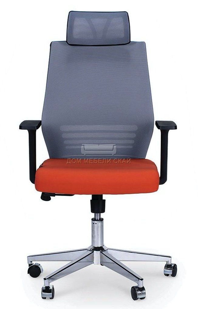 Кресло офисное Престиж, black черный пластик/серая сетка/оранжевая ткань
