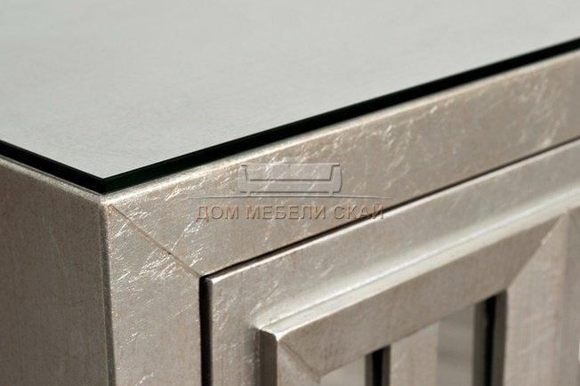 | Материал каркаса | корпус из дерева и МДФ покрыт тончайшими листьями фольги серебристого цвета и проработан вручную лаком цвета шампанского для создания винтажного эффекта, столешница покрыта закаленным стеклом 5 мм | |||