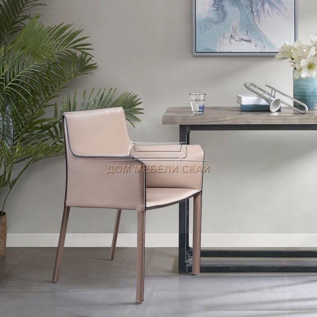 Стул с подлокотниками Barrie, натуральная кожа темно-бежевого цвета