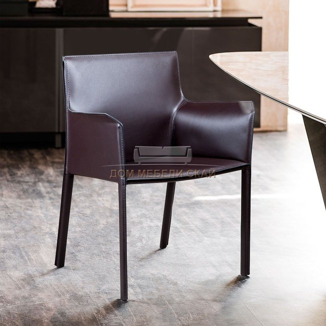 Стул с подлокотниками Barrie, натуральная кожа коричневого цвета