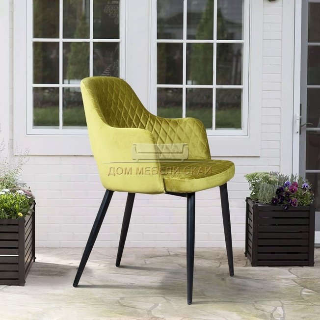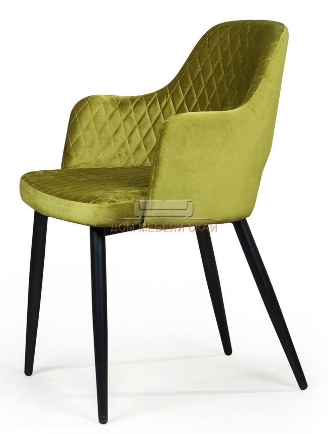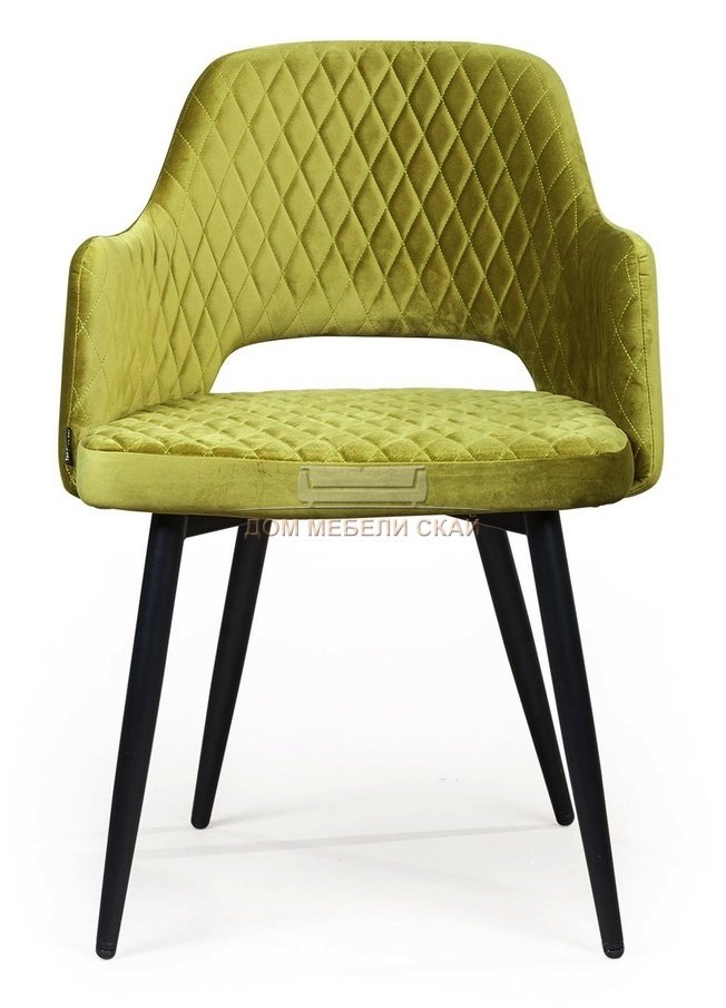 Стул с подлокотниками William, бархат оливково-зеленого цвета/ромб