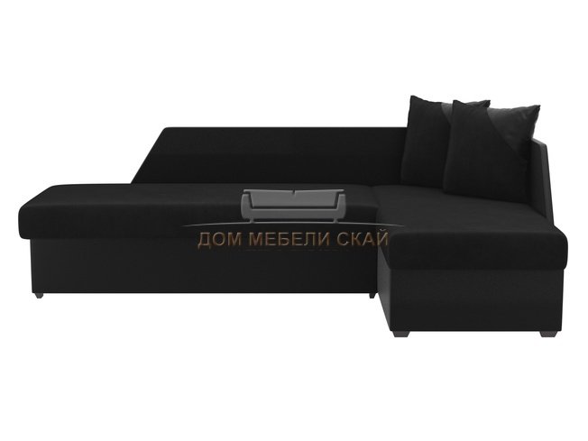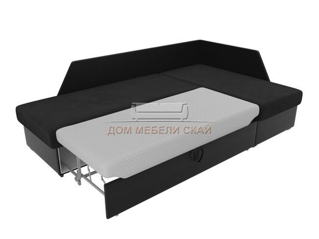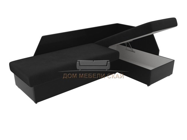 Угловой диван-кровать правый Андора, черный/черный/велюр/экокожа