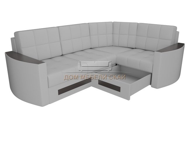 Угловой диван-кровать правый Белла, белый/экокожа