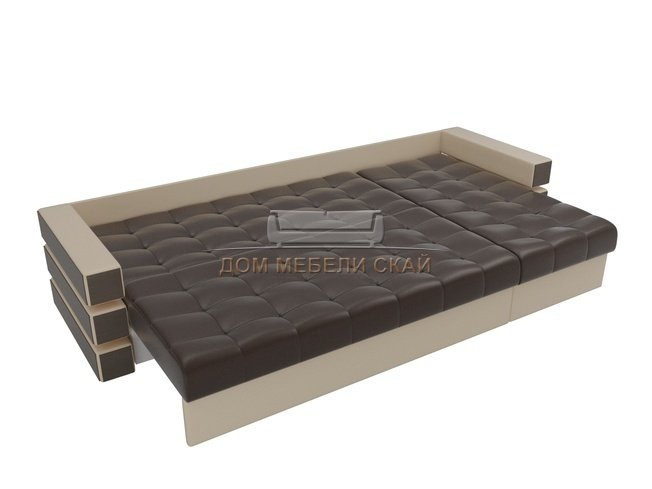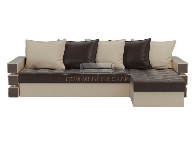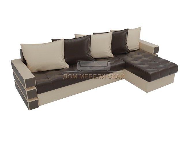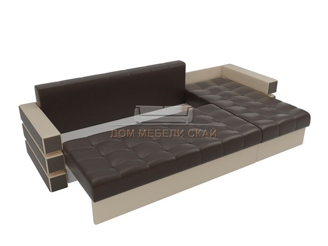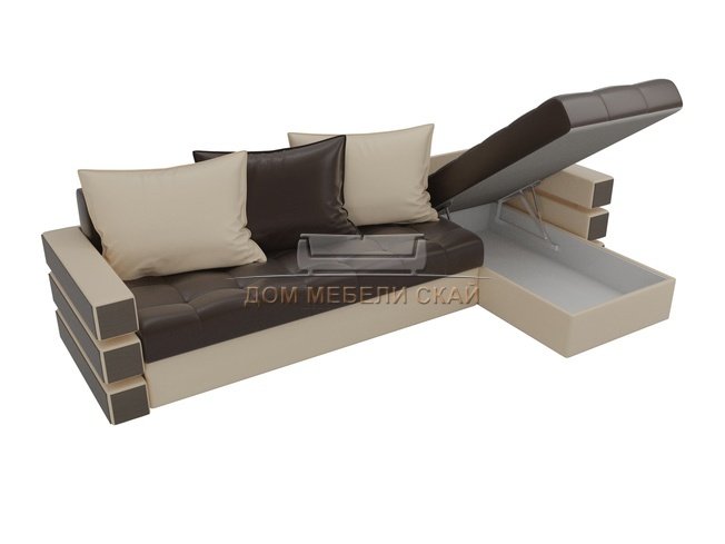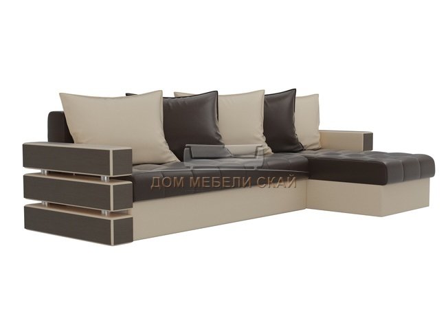 Угловой диван-кровать правый Венеция, коричневый/бежевый/экокожа