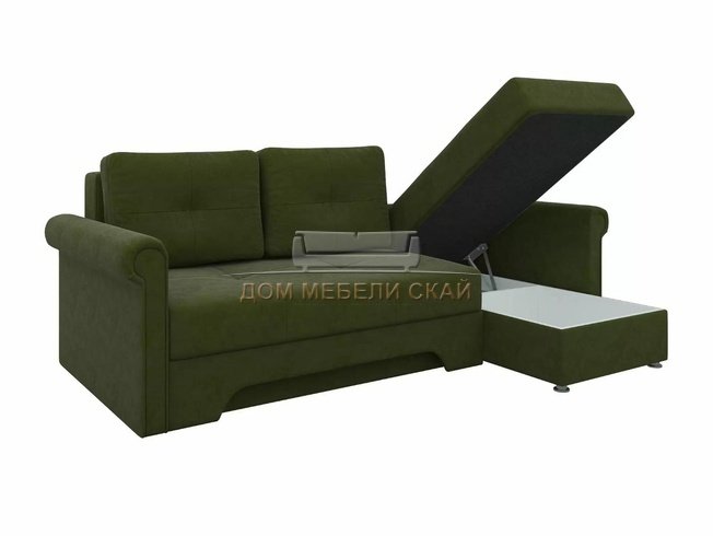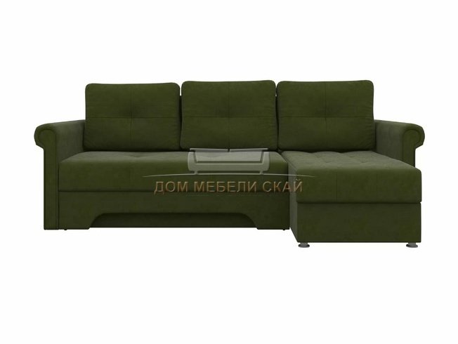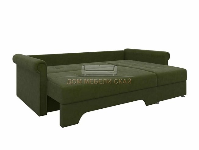 Угловой диван-кровать правый Леон, зеленый/микровельвет
