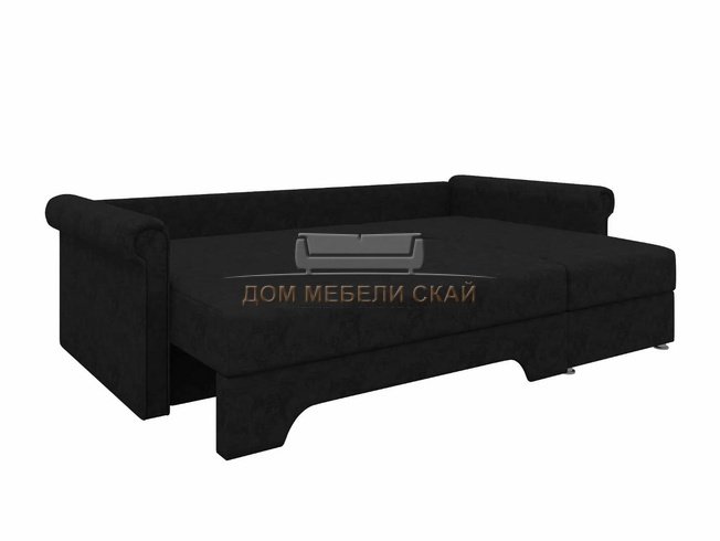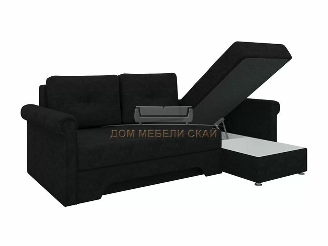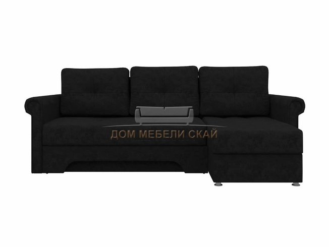 Угловой диван-кровать правый Леон, черный/микровельвет