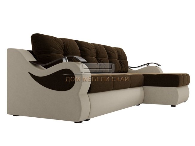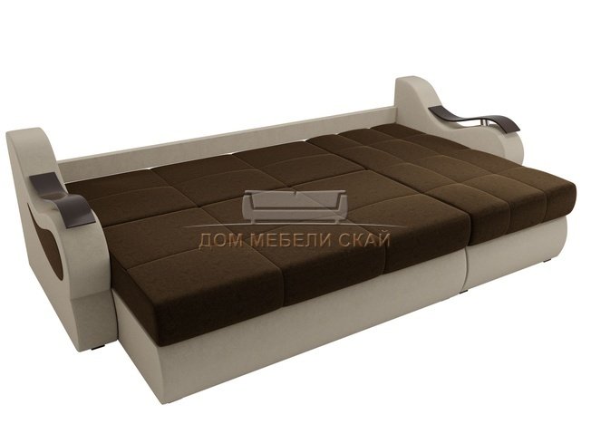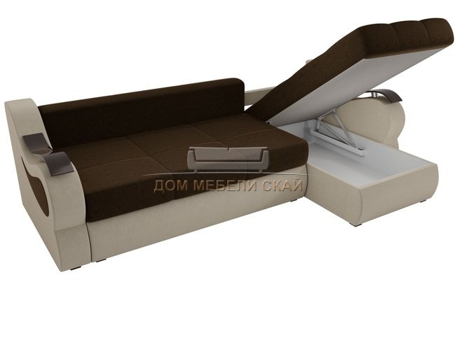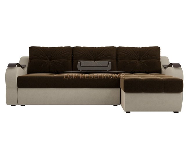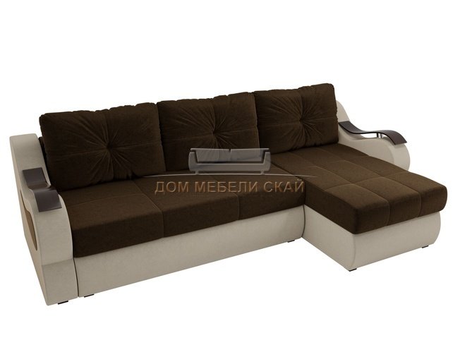 Угловой диван-кровать правый Меркурий, коричневый бежевый/микровельвет