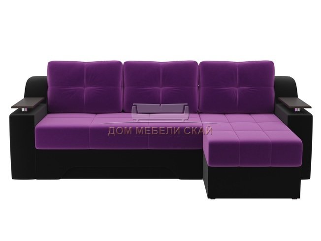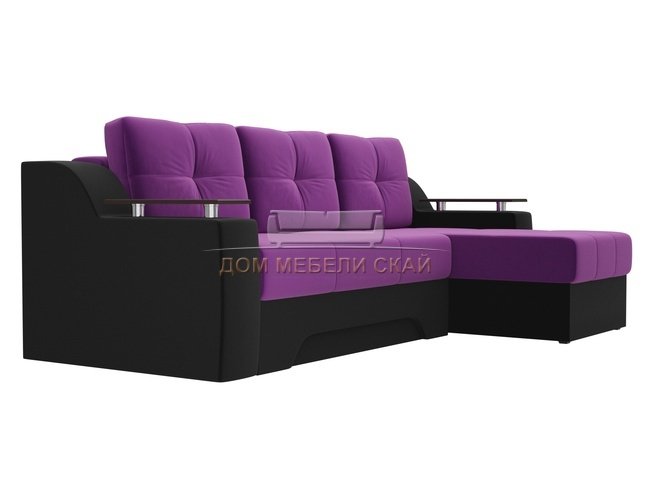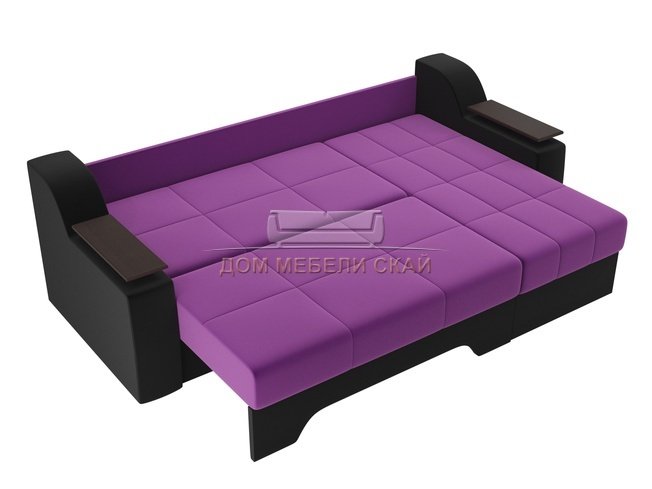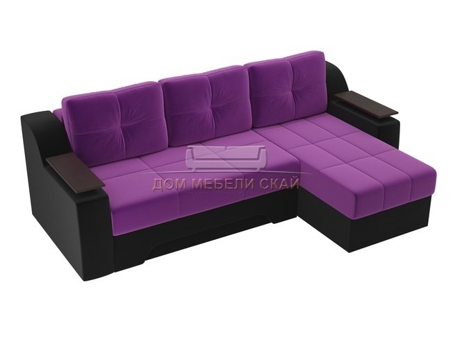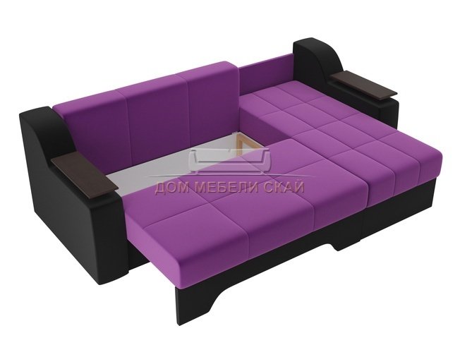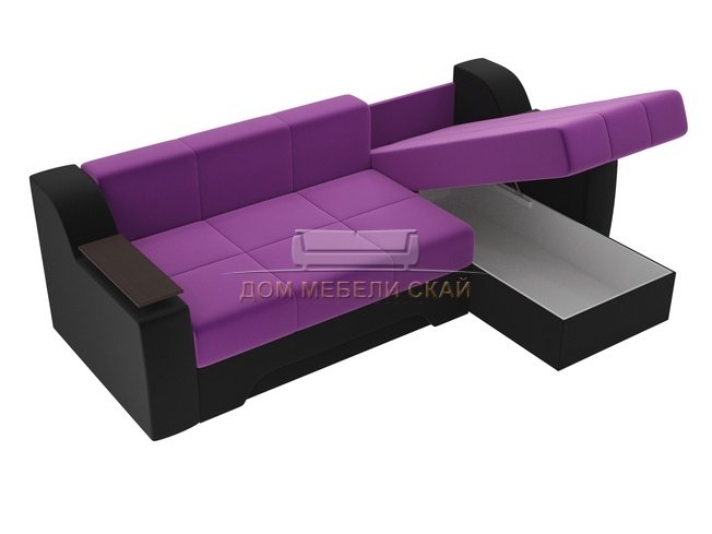 Угловой диван-кровать правый Сенатор, фиолетовый/черный/микровельвет