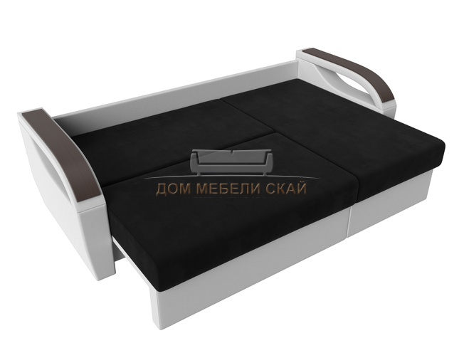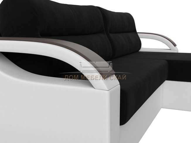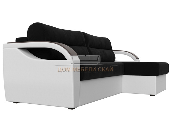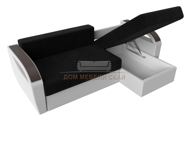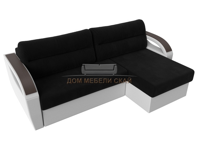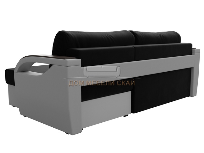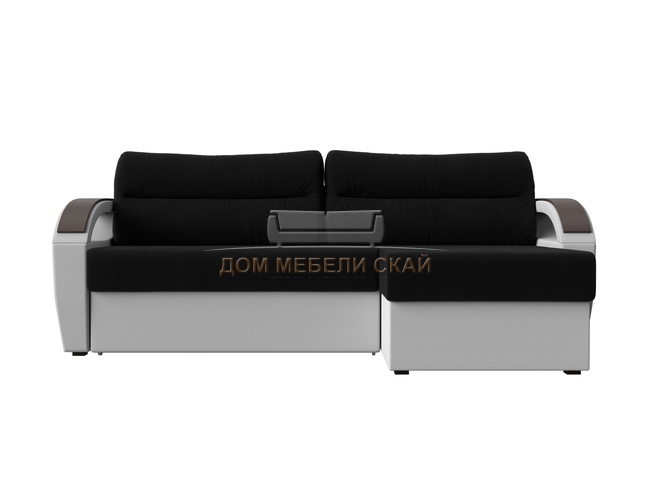Угловой диван-кровать правый Форсайт, черный/микровельвет/экокожа