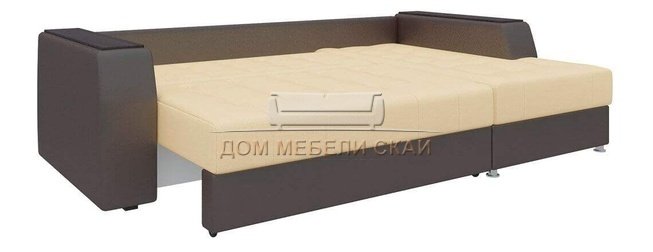 Угловой диван-кровать правый Эмир Б/С, бежевый/коричневый/экокожа
