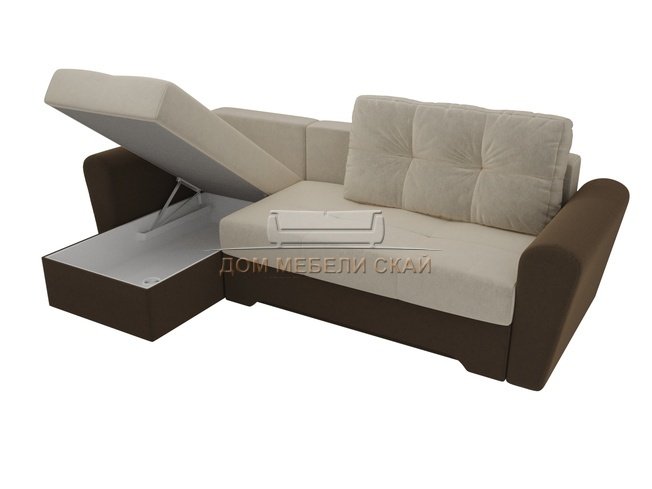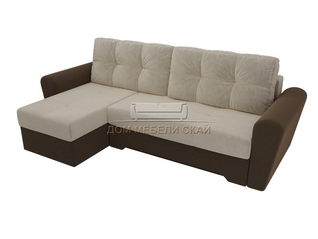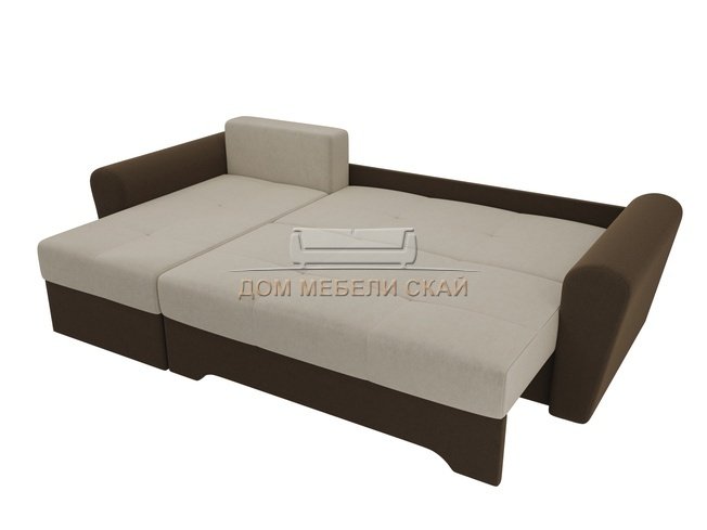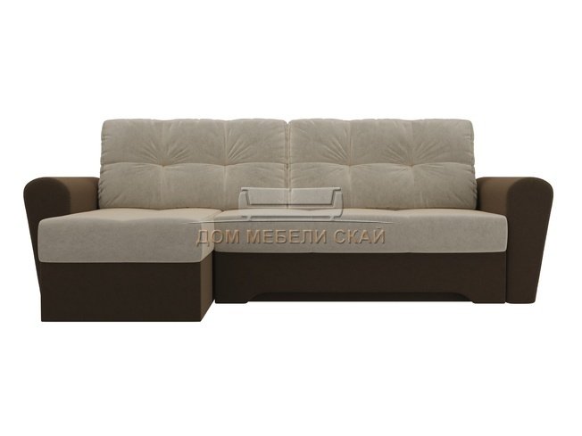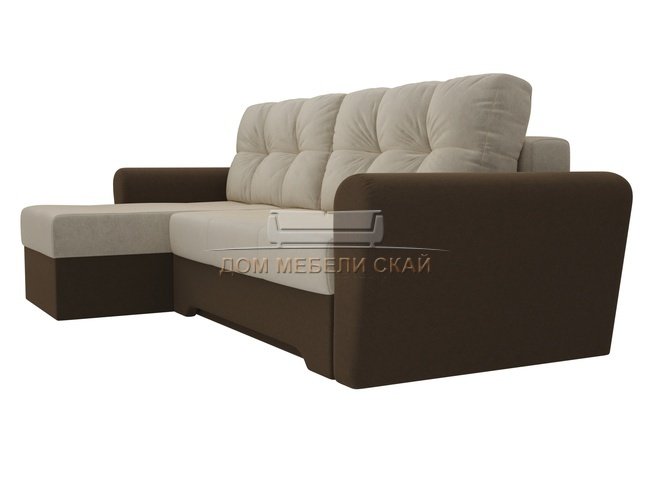 Угловой диван-кровать левый Амстердам, бежевый/коричневый/микровельвет