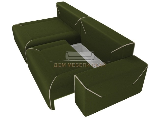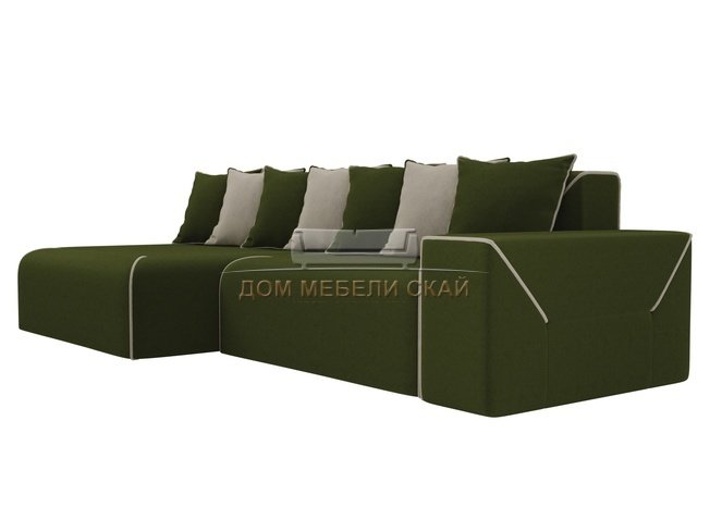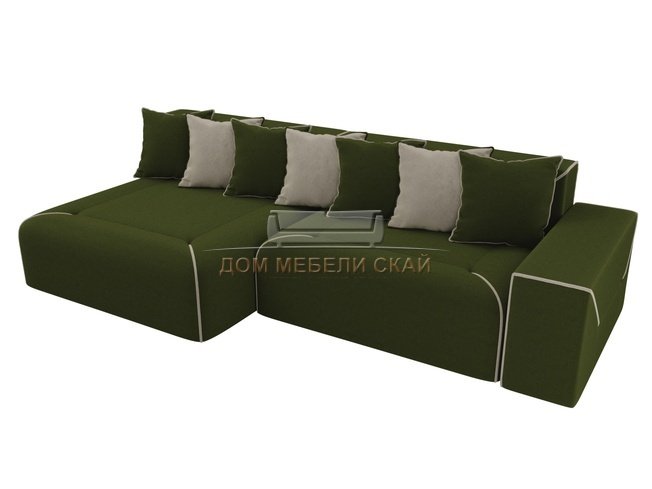 Угловой диван-кровать левый Кёльн, зеленый/бежевый/микровельвет