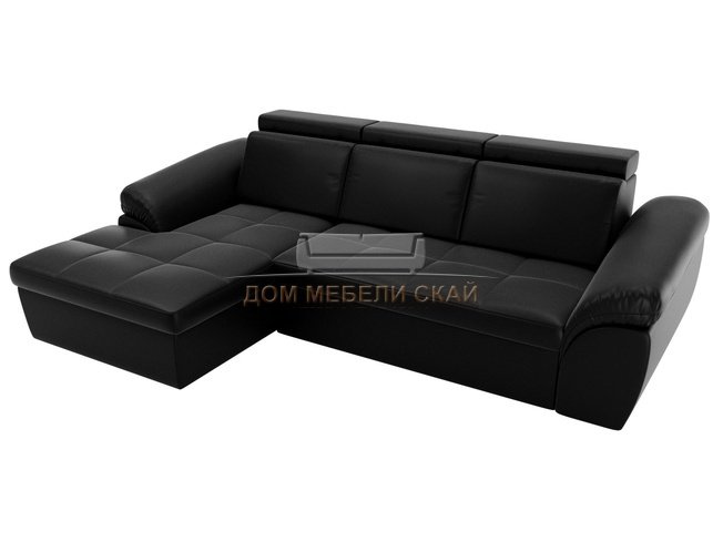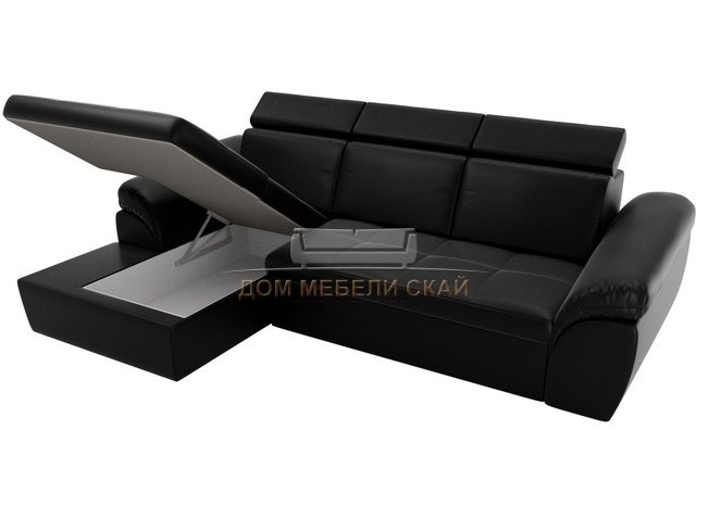 Угловой диван-кровать левый Мисандра, черный/экокожа