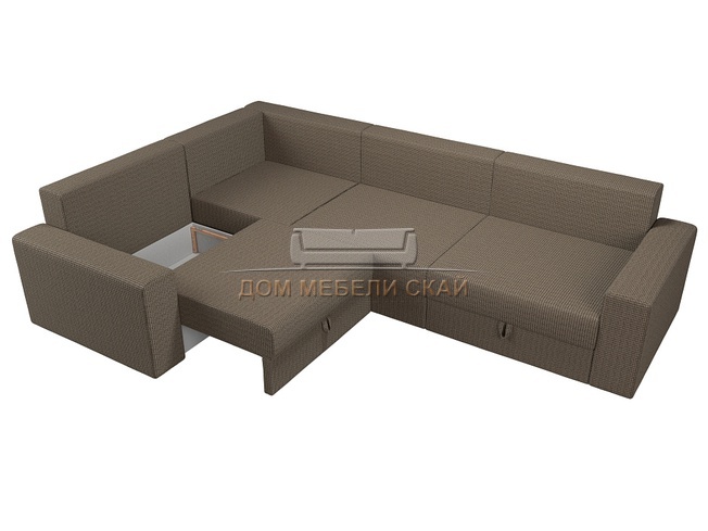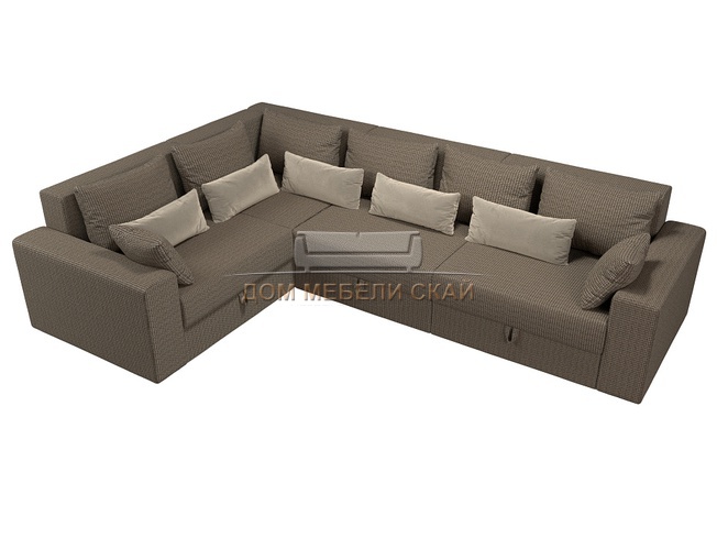 Угловой диван-кровать левый Майами Long, Корфу 03 коричневый/бежевый/рогожка/микровельвет