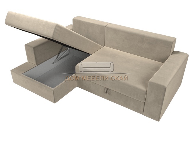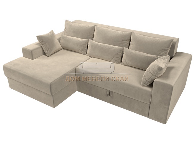 Угловой диван-кровать левый Майами, бежевый/микровельвет