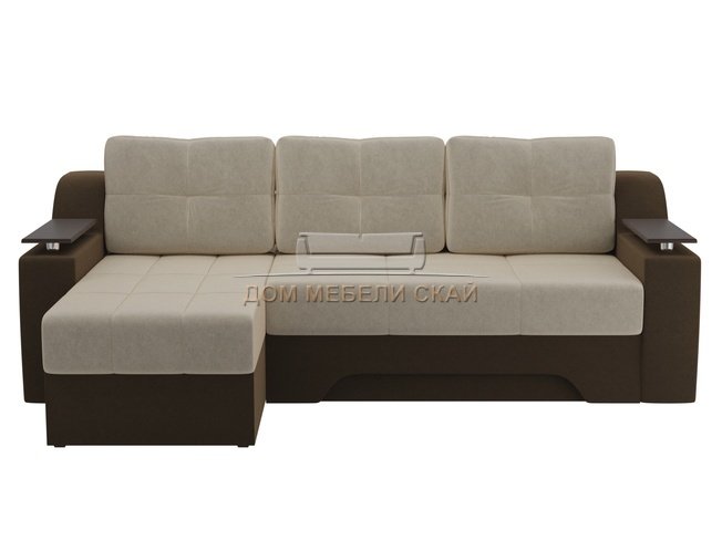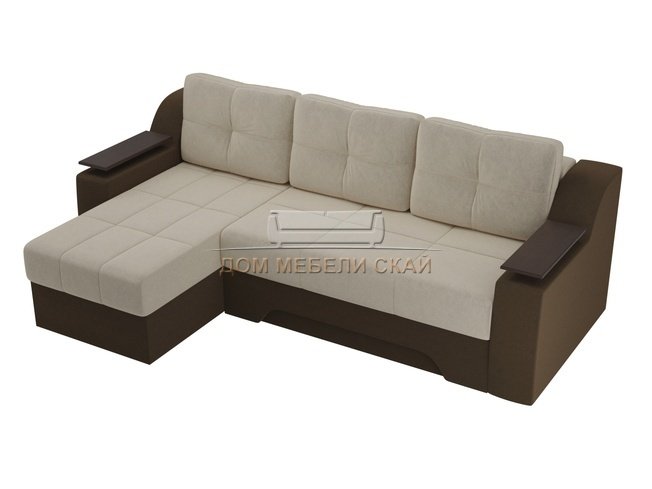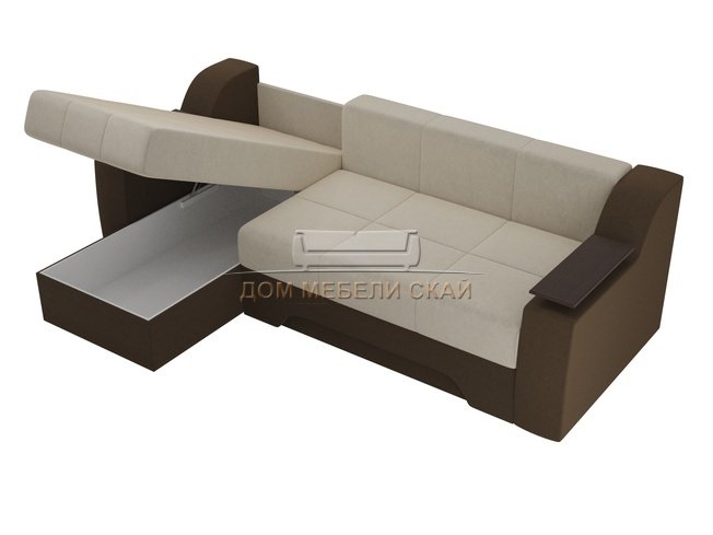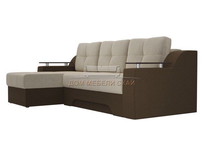 Угловой диван-кровать левый Сенатор, бежевый/коричневый/микровельвет