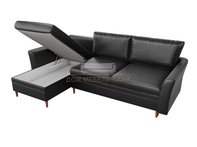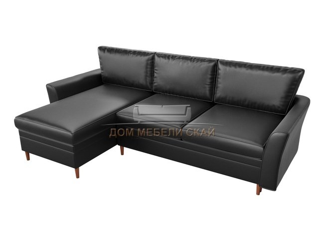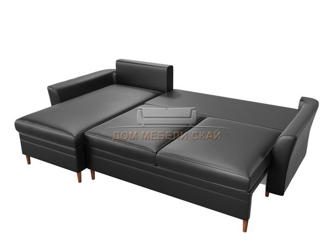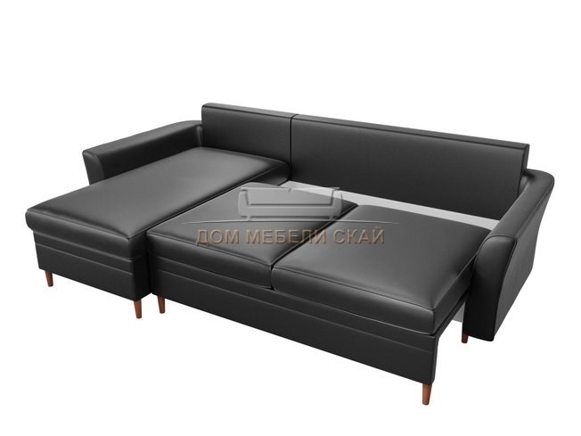 Угловой диван-кровать левый София, черный/экокожа