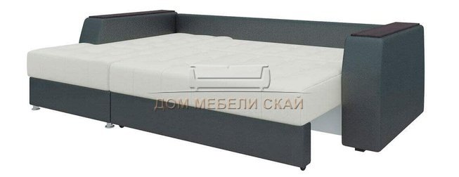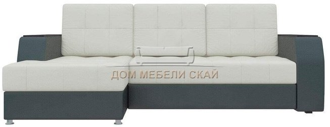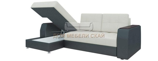 Угловой диван-кровать левый Эмир Б/С, белый/черный/экокожа